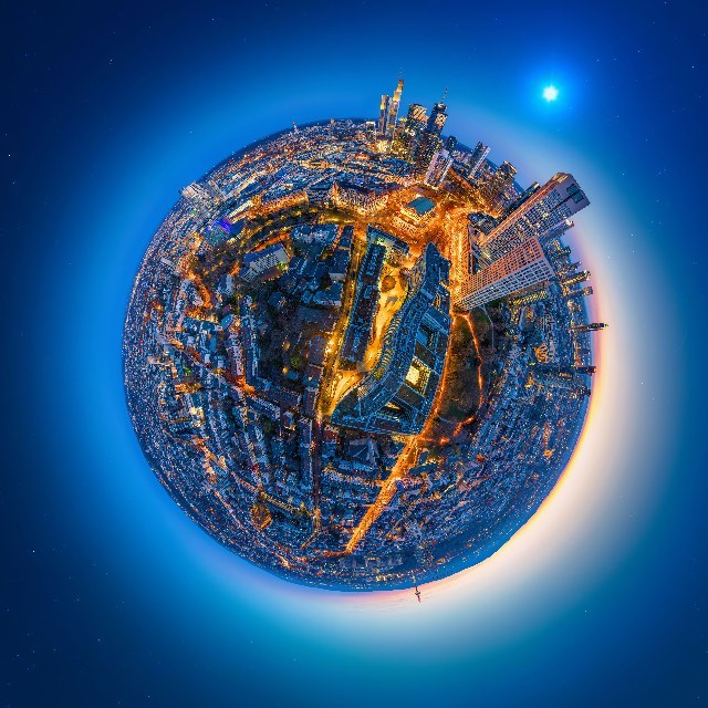Frankfurt/Main Downtown aerial at night. For commercial use you can download the 24k original here: https://www.behance.net/gallery/174038239/24-K-FrankfurtMain-night-aerial-Germany